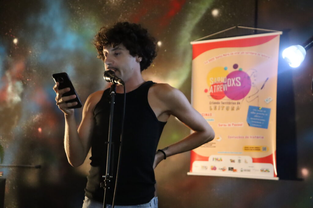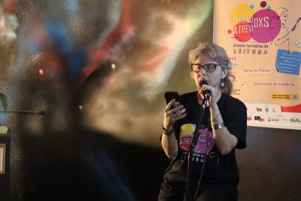 O Sarau dxs Atrevidxs, coletivo e Ponto de Cultura certificado pelo Ministério da Cultura, realiza há mais de 11 anos ações contínuas de fomento à leitura, à escrita e à expressão artística em Santa Maria (RS) e na região central do estado. Contemplado pelo Edital SEDAC PNAB RS – 26-33/2024, no segmento Cultura e Educação, o projeto “Sarau dxs Atrevidxs – Criando Territórios de Leitura” dá continuidade a uma trajetória dedicada a formar leitores, incentivar a criação literária e promover o encontro entre arte, comunidade e diversidade.