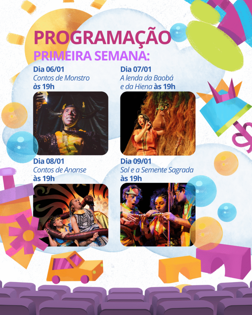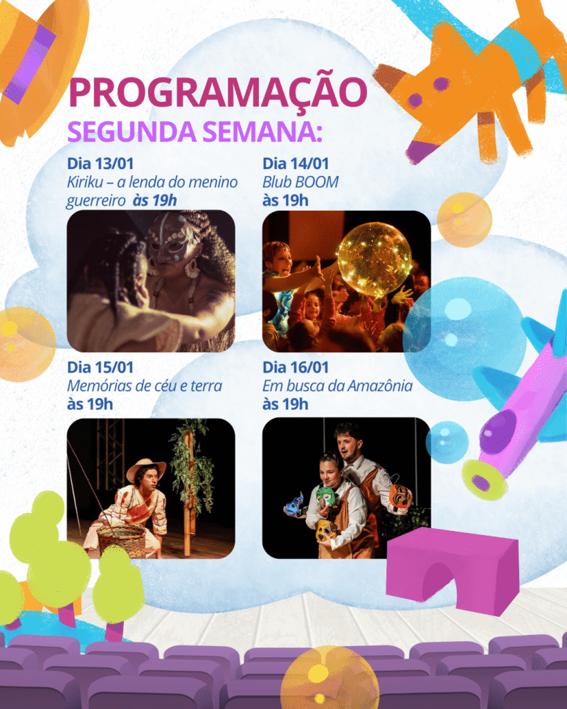 2026 está começando com muito teatro para a criançada! Durante as primeiras semanas de janeiro de 06/01 à 16/01, o Theatro Treze de Maio celebra o novo ano com uma excelente programação, serão oito espetáculos que vão emocionar e família toda e com entrada franca.